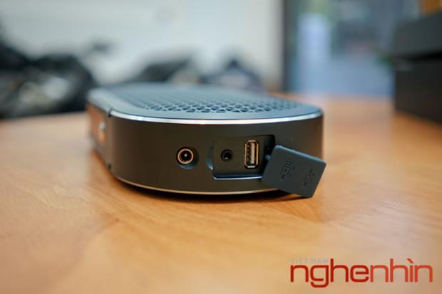 Các phím bấm điều khiển khá đơn giản và nằm hết trên đỉnh loa, phím nguồn bao quanh bởi 4 đèn LED, phím bluetooth để kết nối và ghép thiết bị, phím tăng giảm âm lượng và phím chuyển đổi giữa hai chế độ âm thanh Clear và Warm nhằm phù hợp với các nhu cầu thưởng thức nhạc khác nhau.