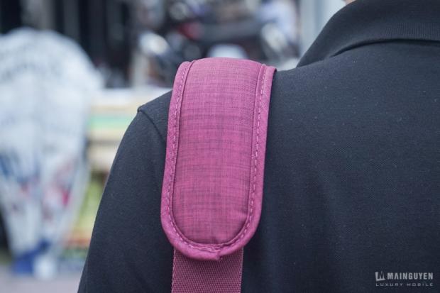 Ở cả 3 kích thước, Tucano đều trang bị một dây đeo vai có miếng đệm Anti-Shock tạo cảm giác thoải mái chắc chắn, êm ái khi đeo trên vai. Ở bên ngoài, lớp vài mà nhà sản xuất Italia sử dụng cho Svolta là vải Nylon cao cấp, tuy sờ thì không cho cảm giác thích và sẩn sần như các vải đang chéo trên Work Out II, tuy nhiên, nó sẽ trông đẹp mắt hơn mà vẫn giữ được khả năng kháng nước hiệu quả (sản phẩm này sẽ không chống nước).