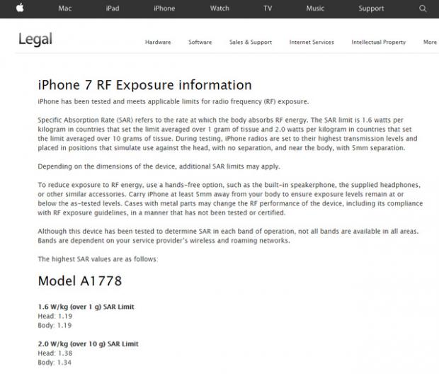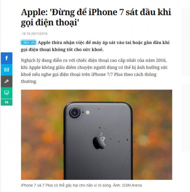 Cụ thể, là các tin tức này đã khẳng định những chiếc iPhone 7 model A1778 ở các thị trường như Singapore, Úc,... đang vướng phải nghi vấn rò rỉ sóng vô tuyến ảnh hưởng đến não người dùng khi để điện thoại sát đầu để gọi điện. Tuy nhiên, những bài báo này là hoàn toàn không chính xác, vì họ đã hiểu nhầm chú thích trên trang chủ hỗ trợ người dùng của Apple.