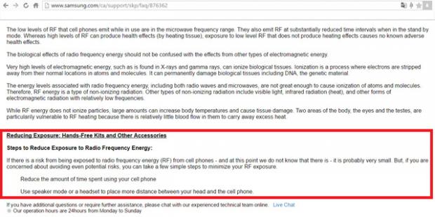 Khảo sát kỹ thì các hãng smartphone như Samsung, LG, Huawei,... đều nêu rõ những tip như giới hạn thời lượng sử dụng điện thoại, đặt điện thoại cách xa cơ thể hơn bằng việc dùng loa ngoài hoặc tai nghe,... trên trang chủ hoặc sách hướng dẫn.