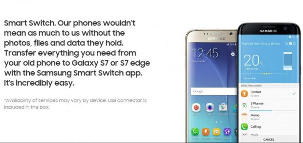 Với tính năng này, bạn sẽ dễ dàng chuyển dữ liệu từ điện thoại cũ như liên lạc, lịch sử tin nhắn, ứng dụng và cài đặt game sang S7 và S7 Edge cho dù bạn từng sử dụng iOS, Android hay Windows. Trong khi ứng dụng và phần mêm Smart Switch đã có thể cài đặt trên S6, Samsung đã giúp người dùng một bước bằng cách cung cấp sẵn tính năng này trên S7 và S7 edge.