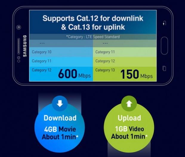 Với modem Cat.12 LTE trên Exynos 8890 và Snapdragon 820, chúng ta có tốc độ download 600 Mbps ( nhanh hơn 450 Mbps của S6/Note 5) và tốc độc upload 150 Mbps. Đừng cho rằng đây chỉ là tốc độ lý thuyết bởi hiện tại các nhà mạng Verizon và AT&T đã bắt đầu phủ sóng mạng LTE Advanced Pro cho tốc độ 1Gbps, vì vậy trong tương lai gần, chúng ta sẽ tận dụng tối đa Modem của S7.