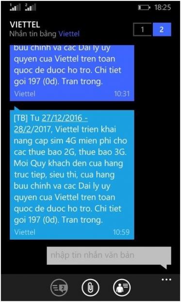 Mới đây, Viettel đã đánh dấu việc sẵn sàng khai trương mạng 4G bằng chiến dịch chăm sóc, hỗ trợ khách hàng miễn phí nâng cấp lên SIM 4G và đăng ký thông tin thuê bao chính chủ. Theo đó, nhà mạng Viettel đã bố trí hơn 1.600 điểm đổi SIM 4G miễn phí tại các cửa hàng, siêu thị, cửa hàng ủy quyền và điểm bưu chính Viettel trên toàn quốc, hoạt động từ 27/12/2016 đến 28/02/2017.