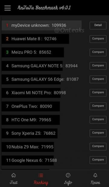 Tài khoản @onleak trên Twitter mới đây đã tiết lộ cả hình ảnh bản thử nghiệm lẫn ảnh báo chí được cho là của One M10. Sản phẩm này đã lỡ hẹn tại triển lãm MWC 2016 trong khi cả Samsung, Sony và LG đều đã ra mắt model cao cấp nhất của mình.