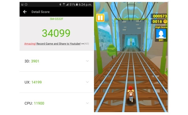 Hiệu năng của J2 Prime khá ấn tượng, máy hoạt động hiệu quả trong các tác vụ đa nhiệm, truy cập internet nhanh, lướt facebook ổn định, chơi game mạnh mẽ, với những game 3D tầm trung vẫn vô cùng “nuột nà”, game 3D đồ họa cao còn chút lag giật nhưng có thể điều chỉnh lại cấu hình game để có trải nghiệm tốt hơn.