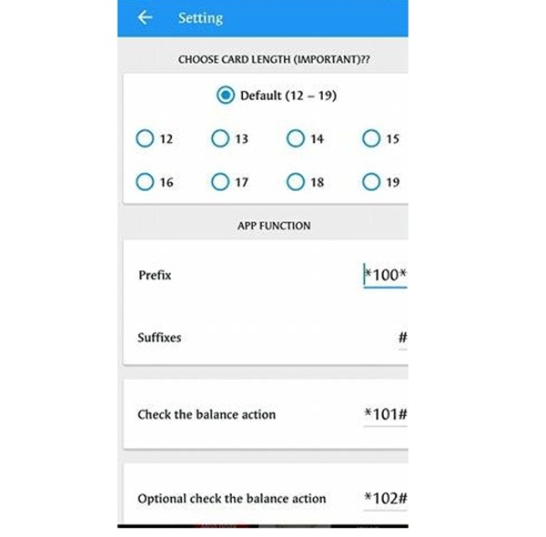 Ở góc trái của giao diện chính là nút bật đèn Flash màn hình trợ sáng. Điều này vô cùng hữu ích khi bạn đang muốn nạp tiền lúc trời đang dần tối. Phía bên phải là phần cài đặt, là nơi để bạn tùy chọn độ chính xác khi quét bằng cách giới hạn số lượng ký tự hoặc thay đổi cú pháp để phù hợp với từng nhà mạng.