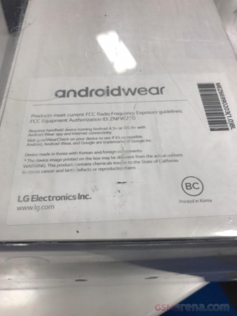 Mặt sau có in mã sản phẩm là LG-W270, sản xuất tại Hàn Quốc từ tháng trước và đã dán tem để sẵn sàng bán ra thị trường. Smartwatch này hỗ trợ thiết bị chạy Android 4.3 hoặc từ iOS 9 trở lên, vì vậy gần như chắc chắn LG Watch Style sẽ chạy Android Wear 2.0 mới nhất.