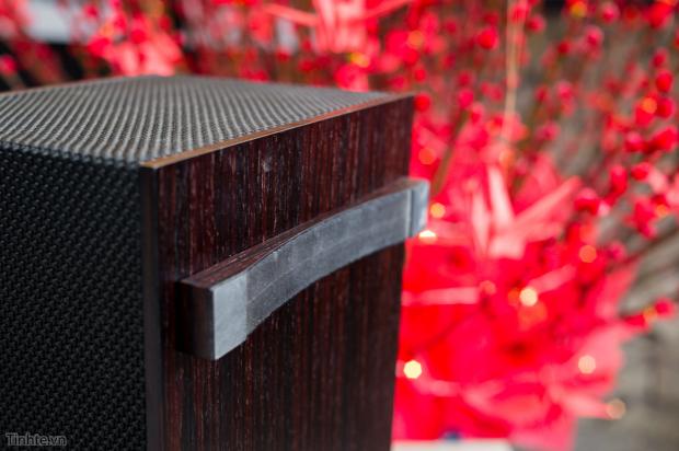 Mặt bên dưới của loa là một bề mặt gỗ với các đường vân khá đen. Phần chân đế cũng bằng gỗ được vát lõm xuống ở giữa, 2 đầu là 2 miếng cao su mỏng để cố định.