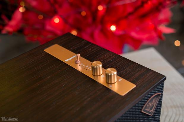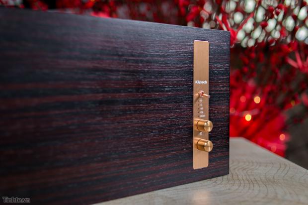 Điểm nhấn tuyệt vời nhất của Klipsch The Three chính là dải điều khiển với các núm và công tắc bằng vật liệu đồng màu vàng, cho cảm giác cực kỳ hoài cổ và Acoustic.