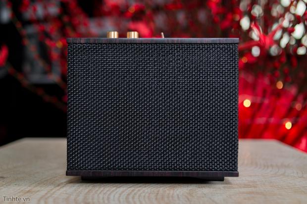 Tổng thể chúng ta có một chiếc loa khá vuông vức, sử dụng 2 vật liệu chính là gỗ và kim loại đồng màu vàng, cho cảm giác khá sang và cực kỳ “Vintage”.