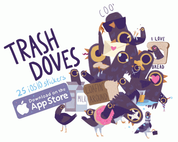 Theo tác giả Syd Weiler, sắp tới người sử dụng phần mềm nhắn tin LINE cũng có thể cập nhật bộ ảnh chú chim màu tím Trash Doves này.
