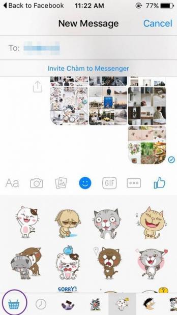 Truy cập trình duỵệt Messenger (nhắn tin bằng facebook), lựa chọn phần Stickers và nhấn vào biểu tượng giỏ hàng.