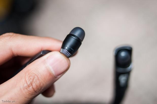 Để thu dây lại thì có hai nút bấm hai bên để chúng ta làm điều đó. Hai sợi dây nối này rất nhỏ và mềm nên mình hơi e ngại rằng nó sẽ bị tổn thương hoặc đứt trong một vài trường hợp cá biệt như trêu đùa nhau hoặc đuổi bắt nhau. Hay thậm chí khi chúng ta đeo có trẻ nhỏ bên cạnh chẳng may nó kéo mạnh thì cũng sẽ dẫn đến hư hại. Đó là những trường hợp rất hy hữu thôi còn bình thường thì hoàn toàn không đáng bận tâm. Ưu điểm của dây thiết kế nhỏ và mềm là khi đeo thoải mái và không vướng víu. Cơ cấu khi rút dây rất mạnh nhưng mình không chắc khi dùng lâu nó còn lực rút mạnh nữa không bởi nếu lực rút giảm thì hai đầu earbud không vào sát vỏ bảo vệ được và chúng ta phải dùng tay chỉnh cho nó vào sát.
