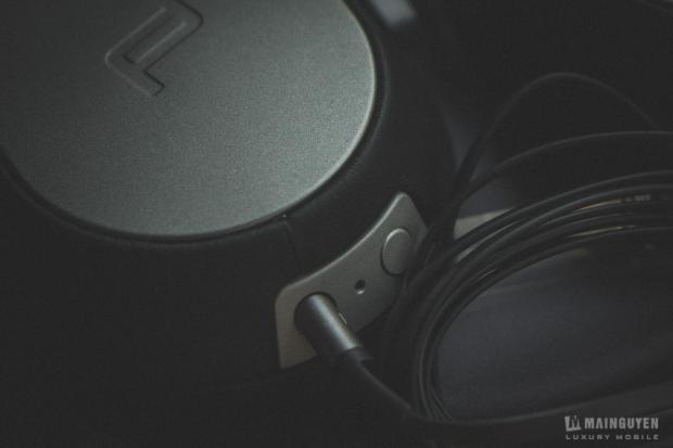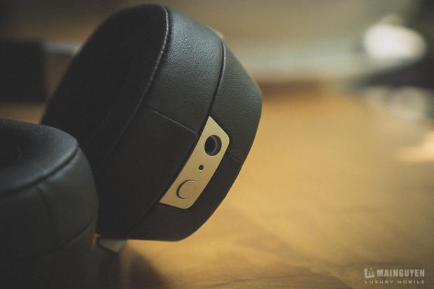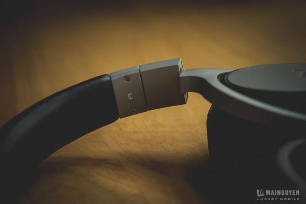 Phần điều chỉnh tách tai rộng, chật được làm rất trơn theo từng khấc. Bên dưới của tai trái sẽ nơi chứa nút bật/tắt chế độc lọc tiếng ồn và jack 3.5mm kể kết nối với nguồn phát thông qua cổng AUX. Còn bên phía tai phải, một nút nhấn rất nhỏ, sẽ được dấu bên trong vành tai, để bạn có thể mở lớp nắp kim loại ra và thay pin AAA cho chế độ lọc tiếng ồn. Nút nhấn này rất khó để mò và nhấn. Mình luôn sợ làm rách lớp vải mút thôi. Nếu là mình, để đổi lại vẻ đẹp hoàn hảo mà dâu nút nhấn này bên trong thì mình hoàn toàn không đồng ý chút nào.
