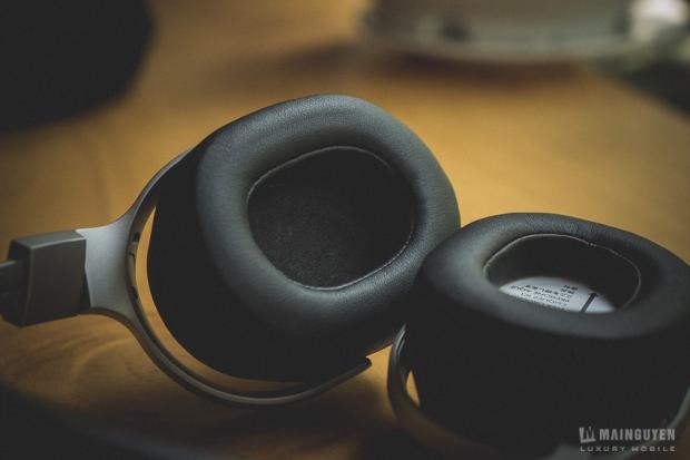 Một miếng kim loại phẳng được ốp bên ngoài phần củ tai có dạng phẳng, khiến mình liên tưởng khá nhiều tới dòng H.ear MDR-100 của Sony, nhưng có chút gì đó đẳng cấp, chút gì đó cứng cáp và chút gì đó nam tính hơn. Khác với Gravity One và Motion One, màu xám của KEF Porsche Design Space One thiên về trắng sáng hơn, khi kết hợp với các bộ phân khác được bọc da đen, mình lại thấy nó có chút gì đó sang trọng hơi hướng cổ điển. Độ tương phản giữa nhôm mịn và da khiến bạn liên tưởng tới đang ngồi ghế Eames Lounge và làm việc với Macbook vậy. Rất kích thích người sử dụng.