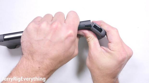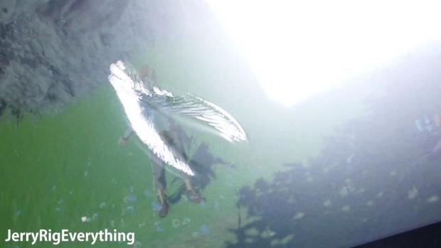 Sau những màn 'tra tấn' bằng dao rọc giấy, Jerry lại chuyển sang dùng nhiệt để kiểm tra khả năng bảo vệ của lớp nhựa bên ngoài. Kết quả cho thấy lớp bảo vệ màn hình bằng nhựa khá là dày, dù lớp ngoài màn hình sau khi chịu ảnh hưởng từ nhiệt độ đã có dấu hiệu biến dạng, thế nhưng các chức năng vẫn hoạt động bình thường và không hề có dấu hiệu lỗi nào xuất hiện cả.