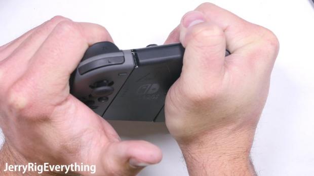 Sau cùng, Jerry chuyển sang phần Stress Test, kiểm tra khả năng chịu lực của máy Switch. Ở phần test này thì Switch cho kết quả khá là tốt khi các khớp liên kết giữa tay cầm với máy có thể chịu lực khá cao mà không hề có dấu hiệu hư hỏng hay lỗi tính năng trừ khi bạn cố tình dùng tay bẻ nó mà thôi.
