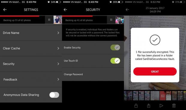 Ngoài ra, thiết bị này còn có một tính năng rất hay đó là bảo mật dữ liệu cá nhân bằng TouchID bằng cách vào mục Setting > Security > Use TouchID.
