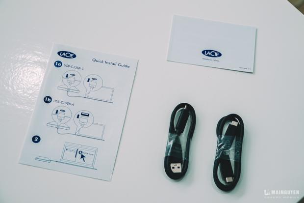 Đi kèm theo chúng ta có một dây cáp USB-C to USB-A và một sợi cáp 2 đầu C, dành cho những thiết bị có sẵn cổng C, thí dụ như Macbook 2016 hoặc các mẫu điện thoại ra mắt gần đây. Đây là điểm khá đáng chú ý ở chiếc ổ cứng di động này bởi USB-C được cho là xu hướng của các thiết bị trong thời gian tới bởi sự tiện lợi của nó.