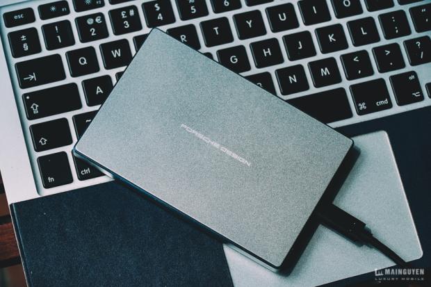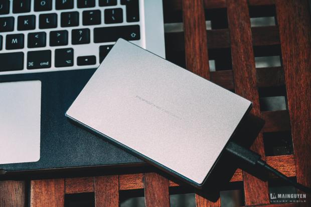 Thiết kế của ổ cứng gần như tối giản nhât có thể. Chúng ta chỉ có dòng chữ Porsche Design ở mặt trên và một cạnh hông là cổng kết nối USB-C cùng một đèn báo màu trắng nhỏ xíu sáng lên khi ổ cứng hoạt động.