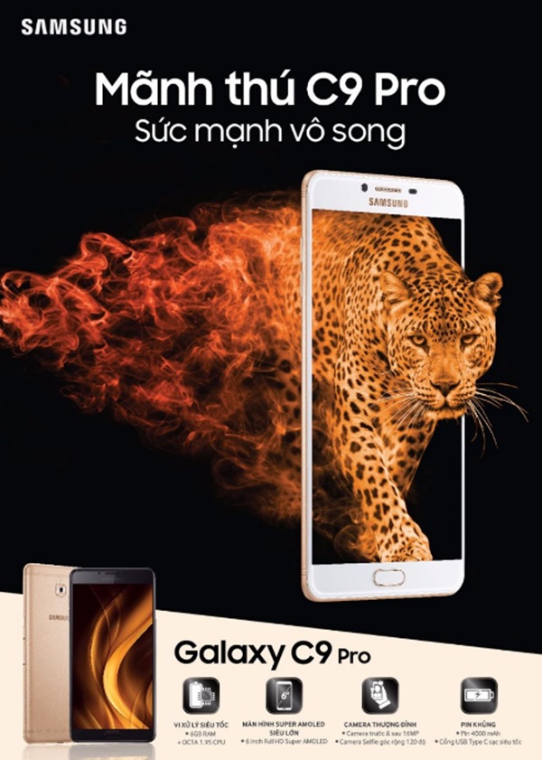 Samsung vừa chính thức tung ra sản phẩm Galaxy C9 Pro tại thị trường Việt Nam. Không hổ danh là “mãnh thú” của nhà sản xuất Hàn Quốc, Galaxy C9 Pro sở hữu màn hình lớn cùng thiết kế mạnh mẽ nhưng vẫn vô cùng gọn gàng.