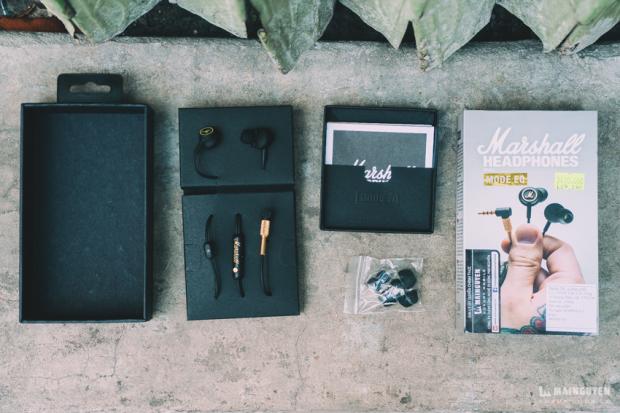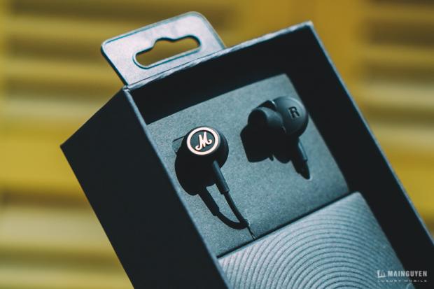 Kích thước củ tai nhỏ gọn cùng chất lượng hoàn thiện tốt, mới nhìn vào mình có cảm tưởng khó đeo, khó chắc trên tai nhưng khi nghe nhạc và hoạt động đi lại trong khoảng 1 tiếng thì mình thích cách nó nằm trên tai, nhẹ nhàng vô cùng. Toàn bộ chiếc in-ear này được thiết kế theo tông màu đen và vàng - thứ màu sắc cổ điển trên những chiếc amply của Marshall mà ngay cả ở những chiếc loa mới như Stockwell bạn cũng dễ dàng nhận ra. Dù sở hữu thiết kế in-ear nhưng Marshall đã khéo léo đặt nghiêng đệm mút silicon một góc nhỏ, vì thế việc đeo tai nghe cũng đơn giản hơn và mang lại cảm giác thoải mái dù sử dụng liên tục trong thời gian dài.