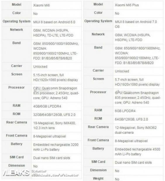 Theo bảng cấu hình rò rỉ trên mạng xã hội, bộ đôi Mi 6 và Mi 6 Plus sẽ có kích thước lần lượt là 5.15 inch và 5.7 inch, tuy nhiên phiên bản Mi 6 Plus vẫn giữ nguyên độ phân giải ở mức 1080p dù sở hữu màn hình lớn hơn.