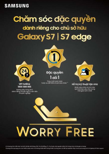 Bên cạnh gói ưu đãi 1 đổi 1, Samsung giới thiệu các dịch vụ VIP Hotline 24/7 và hỗ trợ kĩ thuật tận nhà dành cho chủ nhân của Galaxy S7 và Galaxy S7 edge. Đồng thời, gói Galaxy Elite cũng mang đến cơ hội trải nghiệm phòng chờ hạng thương gia tại sân bây Tân Sơn Nhất/Nội Bài 2 lần/năm cùng với 700 mã ưu đãi hàng tuần để xem phim 2D tại hệ thống rạp CGV và 700 mã giảm giá trực tiếp 100.000 VND ở chuỗi Coffee Bean&Tea Leaf trên toàn quốc.