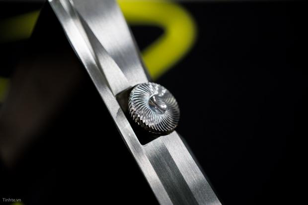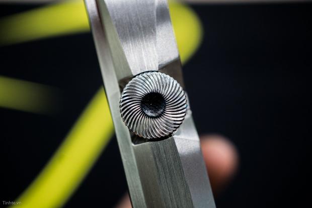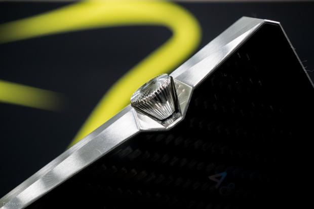 Nút âm lượng trên SP1000 cũng được nâng cấp, đẹp hơn và tiện dụng hơn. Nút tròn xoay vô tận này có các họa tiết đồng tâm và kiêm luôn vai trò của nút nguồn, một điểm khá mới mẻ trên máy nghe nhạc của Astell&Kern. Khi xoay thì nút này vẫn đóng vai trò điều chỉnh âm lượng nhưng khi bấm vào thì nó sẽ là nút nguồn để tắt/mở màn hình hoặc tắt/mở máy.