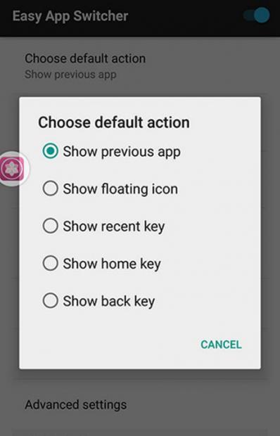 Sau khi đã kích hoạt (hoặc được kích hoạt mặc định), để thiết lập chức năng cho biểu tượng Easy App Switcher, bạn hãy nhấn vào mục Choose default action.