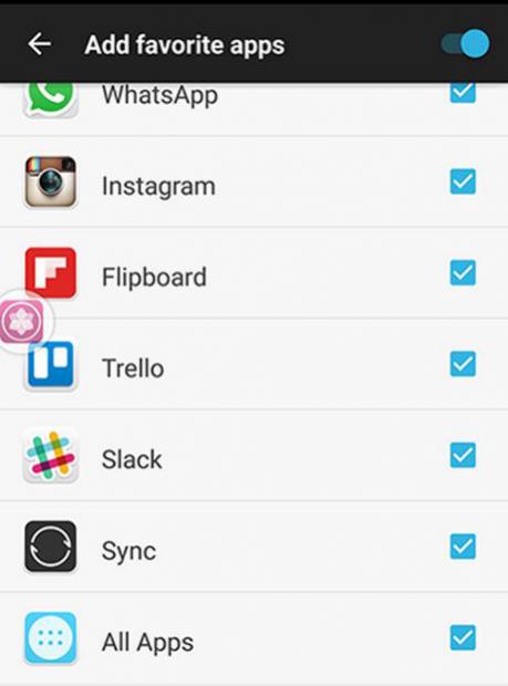 Để thêm các ứng dụng thường xuyên sử dụng vào biểu tượng này, bạn nhấn chọn Add Favorite Apps và đánh dấu chọn các ứng dụng tương ứng với quá trình sử dụng của mình.