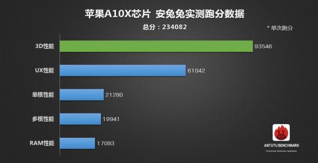 Về điểm số của AnTuTu, A10X Fusion chứng tỏ là một con chip vô cùng mạnh mẽ khi nó vượt qua ngưỡng 200.000. Chip Apple A10X đạt được chính xác 234000 điểm trên số điểm phụ trong lần chạy duy nhất. Đây là lần đầu tiên một con chip xử lý của Apple vượt qua 200.000 điểm AnTuTu. Mức cao nhất mà họ có được là 180.000 vào tháng Năm.