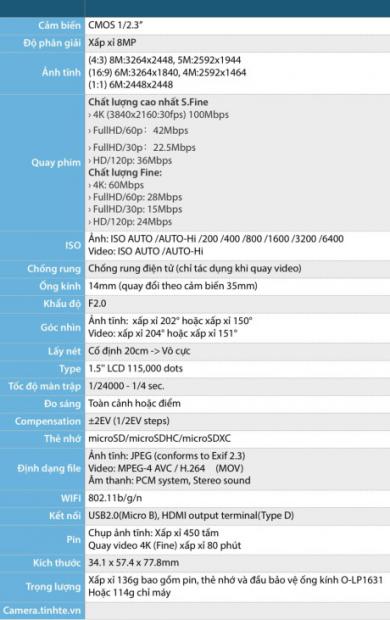 Và đây là nhân vật chính của chúng ta: WG-M2. Máy được trang bị cảm biến CMOS 1/2.3’’ với độ phân giải 8 megapixel, vừa đủ để quay video 4K