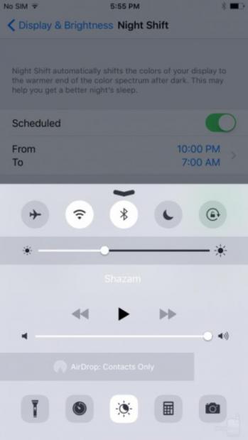 Đây là một tính năng hoàn toàn mới cho iOS, mặc dù khái niệm đằng sau tính năng này thì không mới – nhiều ứng dụng và chương trình khác nhau đã có các chức năng tương tự trên phần lớn các nền tảng hco tới nay, với một trong số đó phải lể đến f.lux. Trong một khoảng thời gian ngắn, tính năng này đã có trên iPhone, nhưng Apple đã ngừng việc này khi có thông tin đã xâm phạm thỏa thuận chương trình nhà phát triển của Apple.