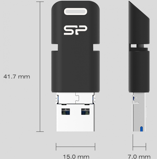 Một USB dùng cho mọi loại máy tính, điện thoại với tablet (trừ iPhone với iPad). Đây là USB Mobile C50 của hãng Silicon Power, kích thước vẫn nhỏ gọn và được tích hợp chân cắm USB-A, microUSB và USB-C. Trong đó hai đầu USB và microUSB lồng vào nhau và cùng nằm ở một đầu, còn USB-C nằm ở đầu còn lại và có nắp cao su. Mobile C50 có các mức dung lượng 32, 64 và 128 GB, chuẩn bị được bán ra trong bài tuần nữa, giá chưa được công bố.