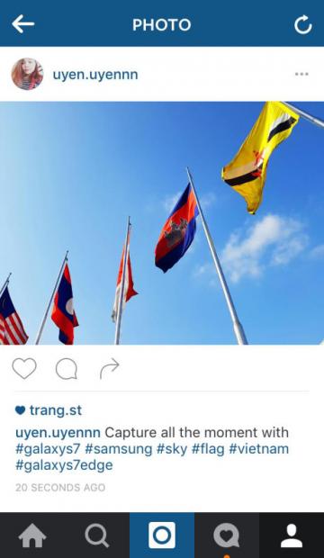 Khả năng bắt cứng chủ thể của công nghệ Dual Pixel được thể hiện qua bức ảnh đẹp của người dùng uyen.uyenn. Người xem có thể thấy chuyển động của các lá cờ gần như đứng yên. Ngoài ra khả năng tái tạo màu bầu trời của Galaxy S7 rất tốt.