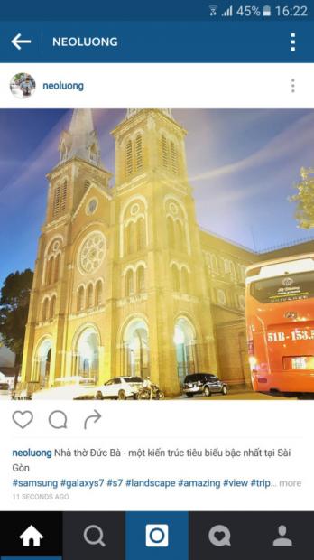 Những bức ảnh trên instagram mang nhiều sắc thái khác nhau nhờ phần cứng camera vượt trội với cảm biến Dual Pixel, khẩu độ f/1.7 và kích thước pixel 1.4 um của Galaxy S7.