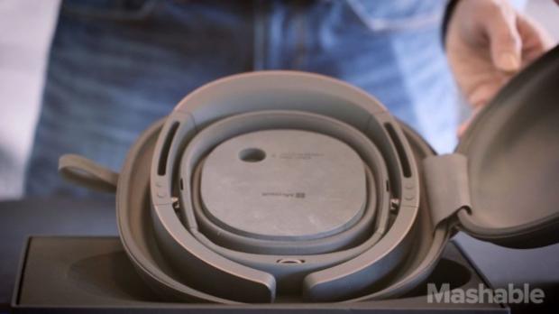 Các bộ phận trên HoloLens được phủ hầu hết bằng màu xám, kính tương đối nhẹ nhưng nhìn chắc chắn và hấm hố.