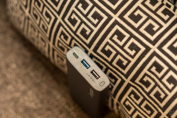 Ở đây có sự xuất hiện của kết nối Type-C và cổng này được dùng cho cả việc sạc pin dự phòng và sạc cho thiết bị khác, nghĩa là nó vừa là input mà vừa là output. Vì là cổng Type-C nên bên trong hộp pin cũng có một cáp Type-C sang Type-A. Ngoài ra, việc trang bị kết nối Type-C cũng rất phù hợp với công nghệ QuickCharge 3.0 bên trong thân pin (vâng, cục pin này cũng trang bị luôn QC3.0 bên trong nó), nhờ đó pin dự phòng của chúng ta có thể sạc siêu tốc và lý thuyết đạt 80% dung lượng chỉ trong vòng 30 phút. Nếu bạn đã từng dùng nhiều dòng pin dung lượng cao khác thì 20000mAh mà có thể sạc đầy nhanh thì đây là một điểm cộng rất đáng giá.