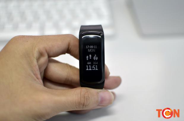 Cảm giác đeo F4 trên tay khá thoải mái nhờ trọng lượng nhẹ. Chiếc smartband này có cảm biến để tự bật sáng khi đưa cổ tay lên giống thao tác xem giờ ở đồng hồ truyền thống. Theo thông tin từ nhà sản suất thì sản phẩm có 4 màu, cái mình đang sử dụng là bản màu đỏ.