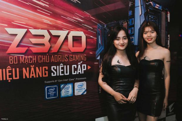 AORUS Z370 đợt này sẽ có 4 dòng là AORUS ULTRA GAMING, AORUS GAMING 3, AORUS GAMING 5 và AORUS GAMING 7. Trong đó GAMING 7 là dòng cao cấp nhất. Trong buổi ra mắt thì anh Lê Duy Thanh, một trong những chuyên gia ép xung nổi tiếng của Việt Nam, đã sử dụng chính bo mạch chủ GIGABYTE Z370 AORUS GAMING 7 để ép xung CPU Core i7-8700K (6 nhân, 12 luồng, xung mặc định 3,7 GHz, xung Turbo 4,7 GHz) lên 5,3 GHz thông qua tản nhiệt nước và xung RAM đạt 4200 MHz.
