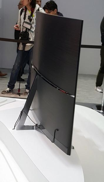TV đời mới của Samsung còn làm mỏng ở cạnh và mặt sau, tạo dáng vẻ thanh mảnh và hiện đại, khác với phong cách cục mịch và chắc chắn như trên model 2015. Tuy nhiên, KS9000 vẫn đảm bảo sự cứng cáp và cao cấp khi sử dụng khung kim loại ở mặt sau, viền màn hình cũng như chân đế.