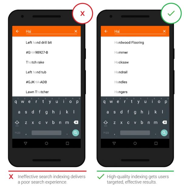 Sử dụng các tìm kiếm gợi ý để đem lại trải nghiệm mua sắm trên di động tốt hơnNgười dùng khi tìm kiếm trên di động không chỉ muốn có kết quả nhanh chóng mà còn muốn được gợi ý các tìm kiếm gần với nhu cầu của họ nhất – giống nhau cách Google đang thực hiện vậy. Bạn có thể sử dụng các ứng dụng hiển thị tìm kiếm liên quan, nhận diện từ khóa hoặc sử dụng lịch sử tìm kiếm của chính khách hàng để đưa ra gợi ý phù hợp. Những công cụ này có thể giảm thiểu lỗi sai chính tả, tìm kiếm sai của người dùng. Cùng với đó là gia tăng tốc độ tìm kiếm, đem đến cho người dùng trải nghiệm tốt và tạo động lực để họ tiếp tục chu trình chuyển đổi.