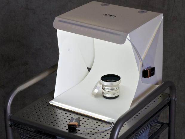 Bạn muốn có được những tấm ảnh nền trắng bắt mắt như các trang bán hàng online? Đơn giản, bí quyết là studio box/foldio – “Hộp chụp ảnh sản phẩm”. Đạo cụ này có kích thước 60x60x60cm được bọc một lớp vải trắng, các góc có gắn đèn chiếu sáng. Bạn có thể tìm mua ở các cửa hàng bán đồ chụp ảnh, giá cả dao động từ 800.000 đến 2.000.000 đồng tùy chất lượng hay đèn, vải đính kèm.