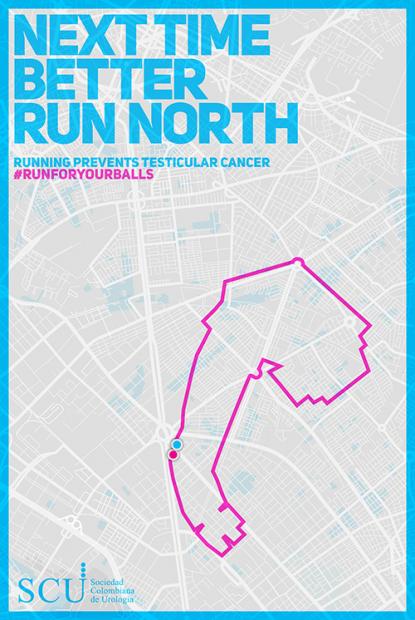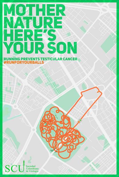 Ung thư tuyến tiền liệt là loại ung thư thường bị phát hiện ở nam giới từ 15 đến 35 tuổi theo trung tâm y tế Colombia. Cách phòng chống căn bệnh này là tập luyện thể thao đều đặn, đơn giản nhất là bằng chạy bộ. Chính vì thế chiến dịch “Run for your balls” ra đời nhằm khuyến khích nam giới chạy bộ, lưu lại hành trình của mình để hưởng ứng và đóng góp vào Quỹ y tế Colombia. Điều thú vị là đoạn đường mỗi tình nguyện viên đồng ý chạy phải được chắp nối thành hình “cậu nhỏ” như một biểu tượng của chiến dịch này.
