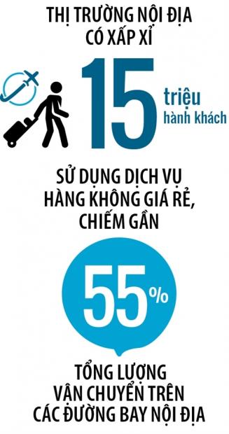 Trong khi đó, thị trường hàng không Việt Nam nội địa có vẻ rất hấp dẫn khi số lượng người chơi vẫn còn ít ỏi với 3 hãng hàng không chiếm phần lớn thị trường. Ngoài ra, còn có Vasco thuộc Vietnam Airlines nhưng quy mô đường bay quá nhỏ để nhắc tới.