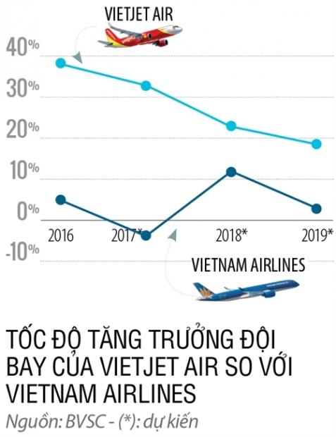 Trái với Vietjet Air tiến lên phân khúc cao cấp, ngược lại, Vietnam Airlines gần đây đầu tư mạnh mẽ cho phân khúc thấp hơn qua hãng hàng không Jetstar Pacific Airlines (hiện Vietnam Airlines sở hữu gần 70%). “Vietnam Airlines hướng đến những khách hàng phân khúc cao với mô hình hàng không truyền thống dịch vụ đầy đủ, đẳng cấp, còn Jetstar sẽ hướng tới nhóm khách hàng bình dân hơn, cạnh tranh trực tiếp với các hãng hàng không giá rẻ”, đại diện Vietnam Airlines trả lời với chúng tôi.