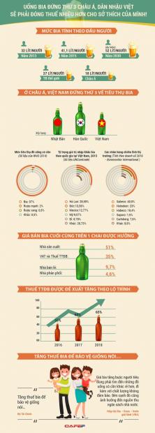 Ở Việt Nam, thuế TTĐB và VAT đang chiếm 35% giá bán cuối cùng trên 1 chai bia và các loại thuế này dự kiến sẽ tiếp tục tăng trong các năm tới theo lộ trình của Chính phủ.