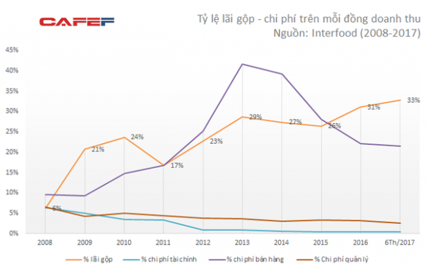 Sau 5 năm tập trung tái cơ cấu, giá vốn đã ở mức thấp hơn giúp biên lợi nhuận cao hơn, Công ty cũng không còn phải chi nhiều cho quảng cáo như 2-3 năm trước. Trong khi đó, chi phí quản lý và chi phí lãi vay đang ngày càng tiệm cận về mức tối thiểu.