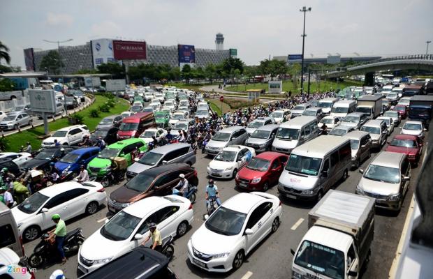 Tắc đường tại sân bay Tân Sơn Nhất. Ảnh: Lê Quân.